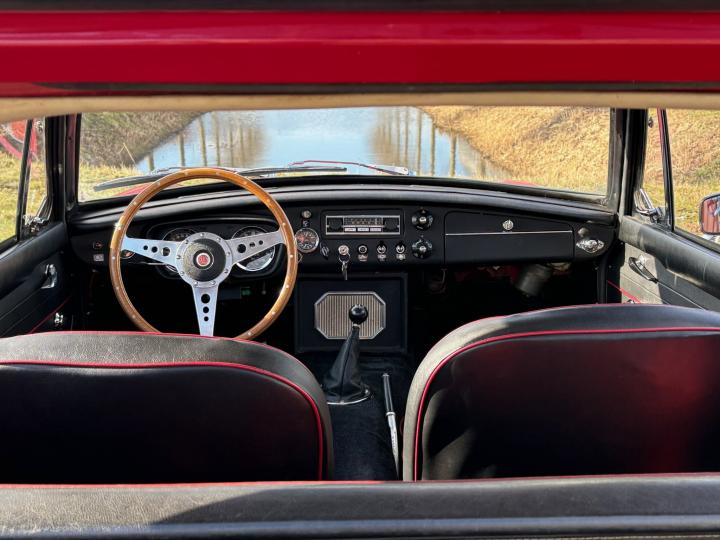 Deze geweldige MGB GT is een originele Europese MG, dus voorzien van het fraaie stalen dashboard en een kilometerteller.