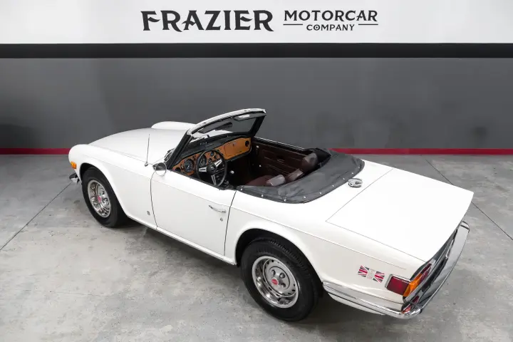 This honest SOLID Overdrive TR6 is as straight as it reflects in the pictures. Note the perfect factory panel gaps with all gaps vertically and horizontally are even and straight. The body seams are clean and correct. The doors are flush against the fenders and quarter panels. The panels are straight. Soft top is in good order. The tires are deep in tread mounted to original wheels with good finish on all four wheels and center caps. Paint is in good order .Interior seats are full, not broken down ,dash cap is good with no cracking or warping. Gauges are crisp, clean and work as designed.