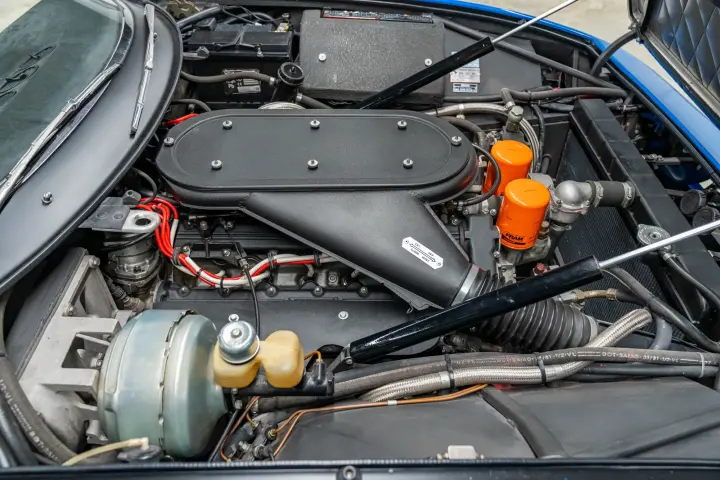Launched at the 1968 Paris Motor Show, the 365 GTB/4 soon became universally referred to as the “Daytona” in honour of the Scuderia’s one-two-three result at the 1967 Daytona 24 Hours. It featured the latest 4,390 cc Tipo 251 development of Gioacchino’s Colombo famous V-12. With a 9:1 compression ratio—8.8:1 on US-spec cars—plus dry-sump lubrication and six Weber carburettors, it was good for 352 horsepower at 7,500 rpm.