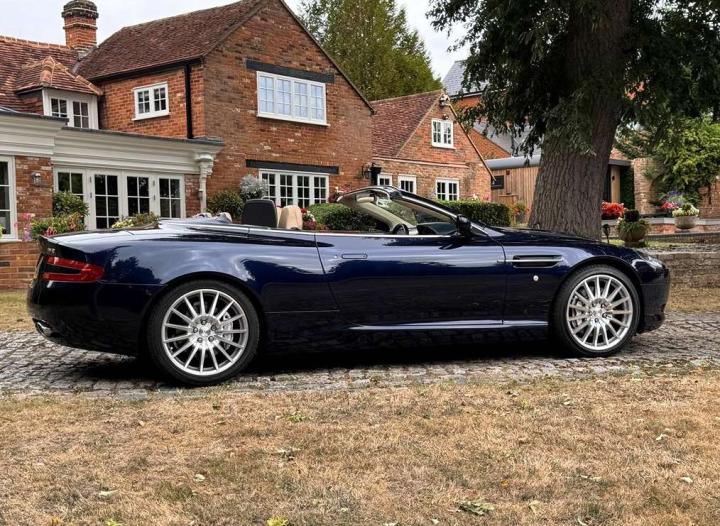 2006 Aston Marin DB9 Volante, finished in Midnight blue with contrasting Sandstorm hide interior with best quality dark blue Wilton carpet throughout. In addition, it has Walnut veneers to the centre console and door cappings, all of which are in lovely condition.. This is a beautiful, well-kept and well serviced example that has had only 3 previous keepers in 19 years. The mileage covered is just over 36,000, which is “Just Run-in” for the V12 5.9 litre Aston Engine and therefore still performing perfectly. The mileage is backed up by the DVLA MOT records, together with a stamped-up service book containing 15 service stamps and a number of corresponding service invoices. Fitted with the more desirable, paddle-shift automatic transmission making this car extremely easy to drive. It has the benefit of 19” multi spoke, sports alloy wheels shod with the correct Bridgestone Potenza speed rated tyres, all of which are in excellent condition. In addition, it has heated electric seats with lumbar support, Powerfold mirrors, fitted wind deflector, an indoor car cover, a battery charger, and an electric tyre inflator. This superb DB9, now represents exceptional value for money for one in this condition at only £31,950. It comes with a 6 month warranty for added peace of mind.