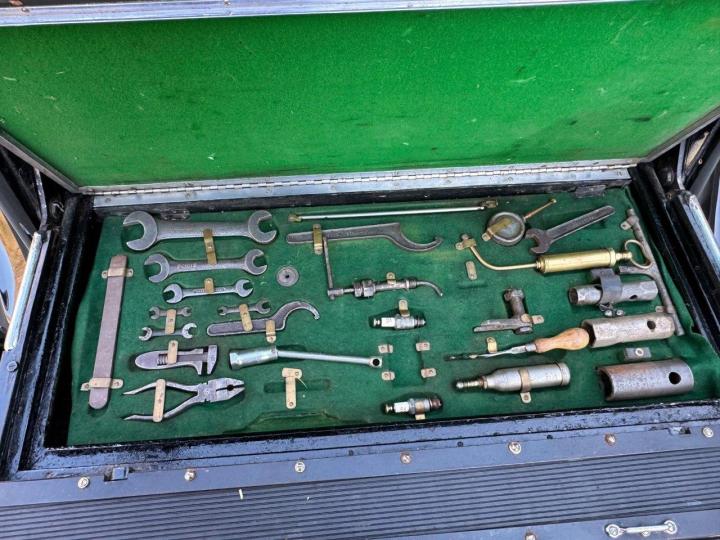 A handsome car, which has benefitted from a good deal of attention, including an engine refurbishment, with a new block & pistons, and a while before that a new cylinder head. The car is good and sound, and has correct P100 headlights, long-trumpet horns, and twin side-mounted spare wheels, as well as attractive ‘trouser crease’ wings. In the boot is a fitted tray with a good selection of correct, original tools, and the car is accompanied by a sizable file of paperwork, which include invoices for work carried out over the years amounting to nearly £50,000, photos of the car being repainted, old MoT certificates, an original handbook & various other documentation. An overall very good example, running nicely, waiting for its next life chapter.