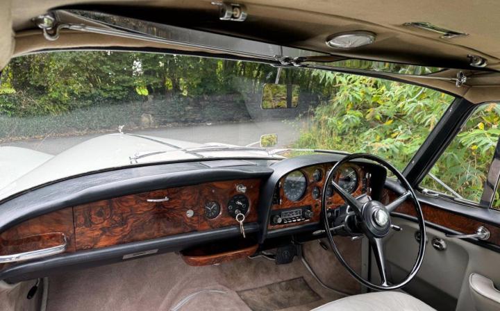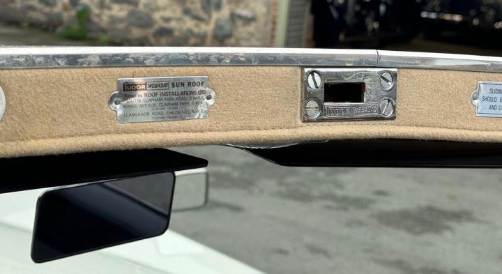 A good, clean example, nicely finished in soft white with good chrome plating and pale grey leather interior, and specified when new with 'Sundym' rear screen and rear side windows, which are indeed still in place to this day. Unusually, and appealingly, the car is fitted with a Tudor-Webasto fabric sunroof, complete with identifying tags, as shown in one of the photos. We have prepared the car for sale, work which included attention to brake hydraulics and servo, power steering, etc, as well as a full service. Running nicely, driving well, and we have successfully reinstated the original registration number, which is pleasing.