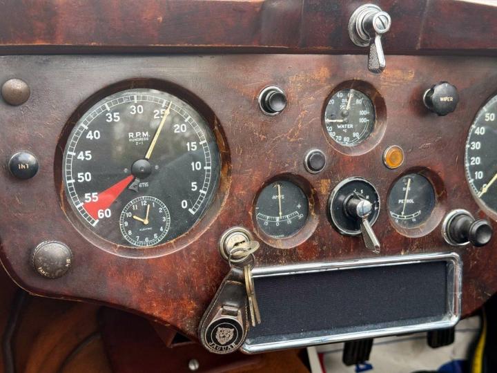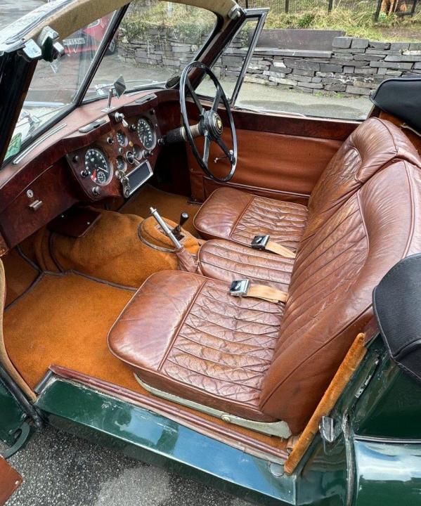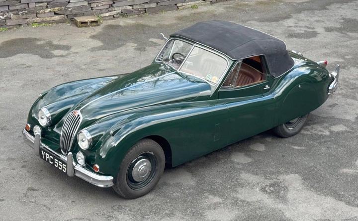 A totally correct and exceptionally original example of a rare UK market, RHD drophead, supplied new in 1955 by The Woodcote Motor Co, Epsom. Sound condition, cosmetically mature and appealing, retaining original, mellowed tan leather interior, and of nicely understated specification with disc wheels and spats. The paint shows its age in a quite charming way, the chrome work is very good to excellent, and the overall appearance is seductively appealing. One owner from 1974 to 2015, and one since. Just 6,000 odd miles covered during those fifty years! Recent work has included a new stainless exhaust, new clutch, complete re-wire and a good deal more besides. Comes with a Jaguar heritage certificate confirming original specification and colour scheme, and a file of invoices from recent years showing parts expenditure, etc. Driving very nicely, sounding great, and fun to whizz around in! Very few survive in such undisturbed condition!