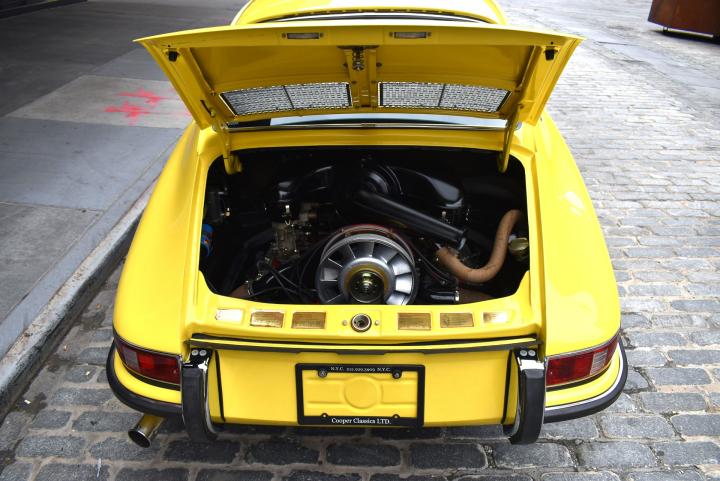 Cooper Classics has the pleasure of offering for sale this 1967 911S Sunroof which has been restored to near Concours level. This beauty retains both its matching numbers engine and transmission, as confirmed by the COA. This 1967 911S is from the first year of 911S production. This 911 presents as new inside, outside, and underneath, with paint that looks new, a freshly reupholstered interior with new seat upholstery, and it received a full engine rebuild on its matching numbers original engine in May 2022 by Porsche experts RennWerke Porsche with all receipts. The Bahama Yellow was replaced by a brighter Yellow by the previous owner who is a renowned Porsche Collector. The car has a few carefully selected tasteful upgrades, which include RS Style Door Panels, and a Rear Seat delete (with upholstered carpet). The original matching numbers 5 speed transmission shifts like butter and the car stops on a dime. The rarely seen and often deleted Webasto Heater is present and in restored condition. The car was owned most of its life by a renowned Porsche collector who restored it to his own taste. We recently took this 911S out for a 50 mile drive and it drives like a brand new 1967 911 would with plenty of power compared to a regular 911 and sporty and exciting driving dynamics. The 911S was extremely popular as it had 30% more power than a 911, at 160HP. The extremely rare Electric Sunroof works perfectly and is a dream on nice sunny days. This 911S comes with its COA, Books, Tools, and Spare Wheel