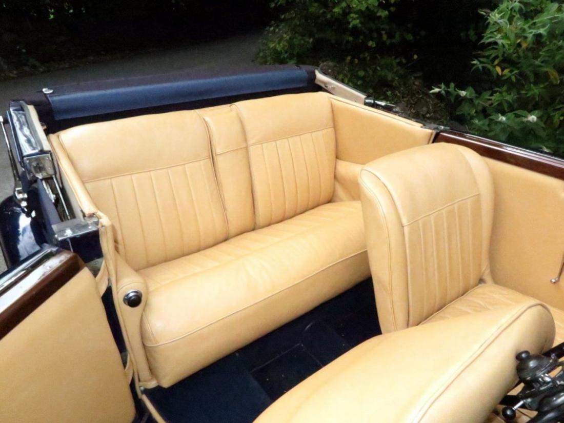 A very handsome, rare and desirable coupe, in clean, smart condition, and being 3 position, offers a versatile range of options in terms of coachwork configurations. With its louvred bonnet & scuttle, trouser crease wings, rear mounted spare wheel, 'Ace' wheel discs, excellent chromework, the impressive array of lamps (P100 headlamps)and horns, the car really is pretty and very well balanced proportionally. The paintwork is in a lovely shade of pearlescent deep blue (needing a little attention), with harmonising blue mohair hood, excellent blue carpets and light tan leather interior, a combination that works very well in our opinion. The file contains various history, including an invoice for approximately £9,000 spent on re-commissioning work in 2015/16. Fitted with a stainless steel exhaust system, flashing indicators for safety's sake, running nicely and complete with the large tools in their correct clips in the engine compartment and various original small tools in the bootlid tray.